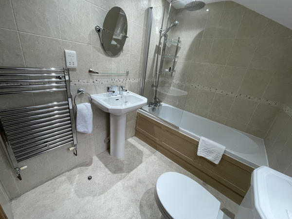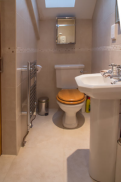 Upstairs: The cottage has 3 bedrooms, 2 double bedrooms with 5' bed and 1 twin room. One of the double bedrooms has an en-suite shower room. There is also a bathroom with WC, basin and bath.