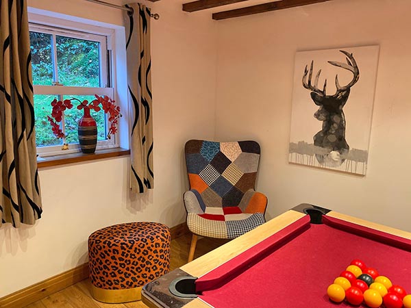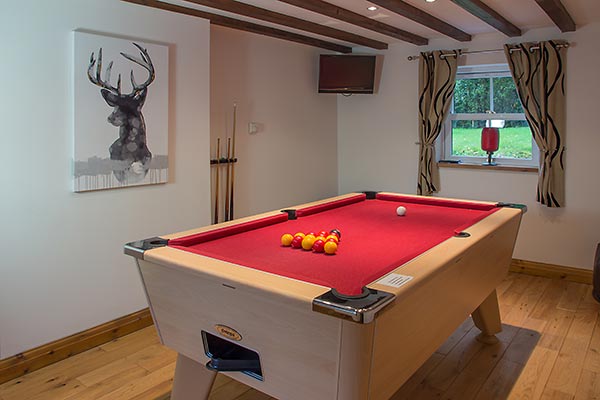 Downstairs: There is a fully equipped kitchen/diner with granite worktop, and french doors leading out to the garden. There is a Nespresso coffee machine (please bring extra Nespresso or compatible pods). The comfortable lounge has an original inglenook fireplace and woodburning stove. There is also a games room with pool table and TV.