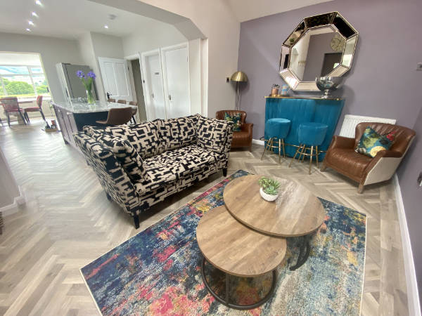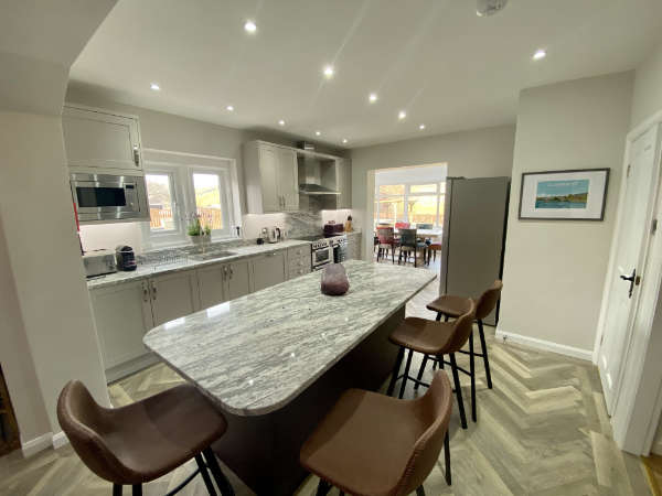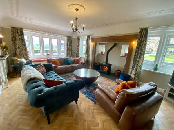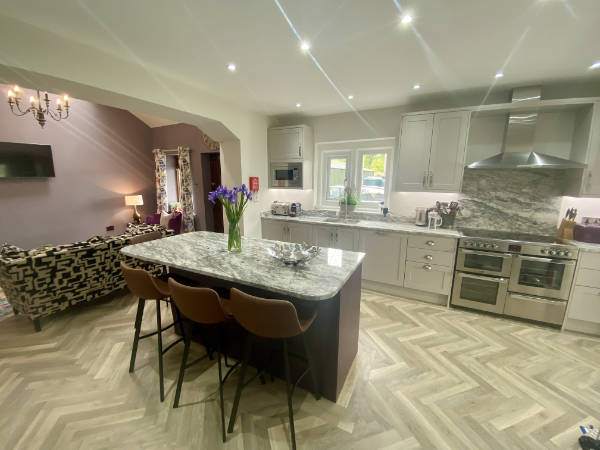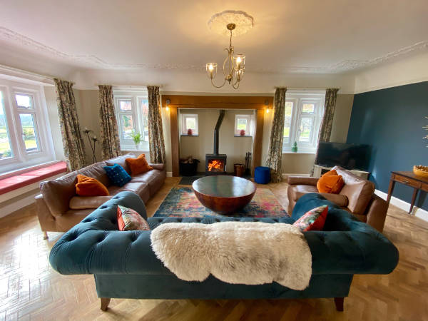 There is a large kitchen/conservatory with pool table, bar, island, TV with Netflix, and dining area. There is a Nespresso coffee machine (please bring extra Nespresso or compatible pods). The lounge feartures a log burner and TV with Netflix.