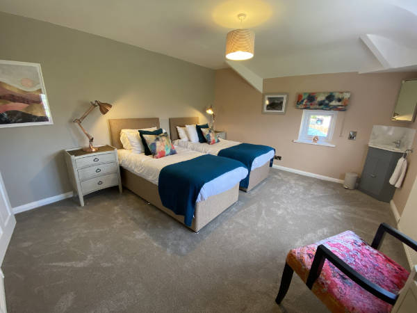 - 2 x twin rooms than can also be super king rooms (zip up beds) with wash basin